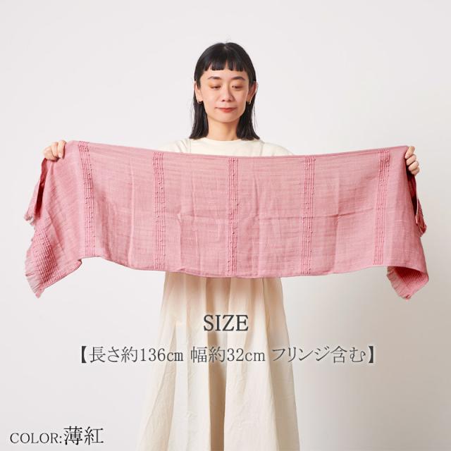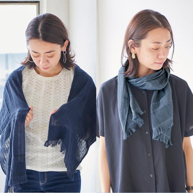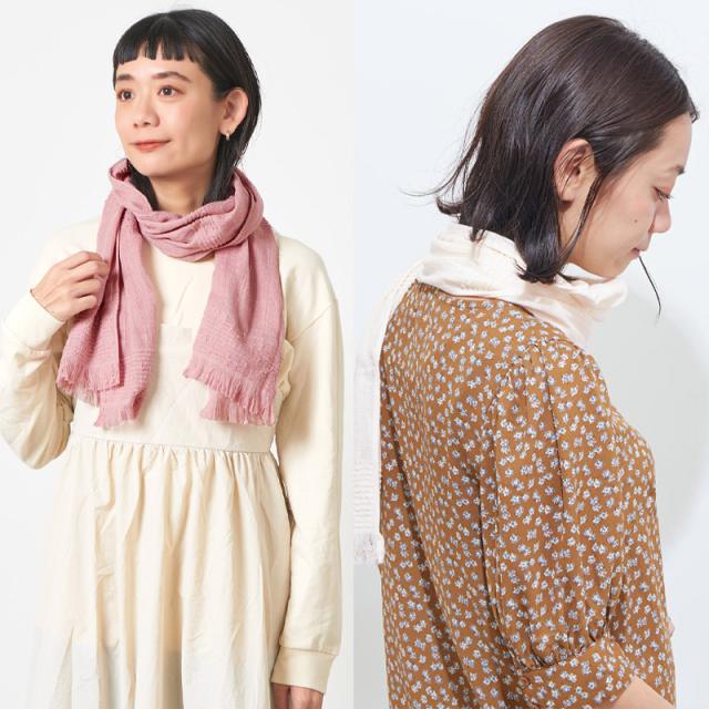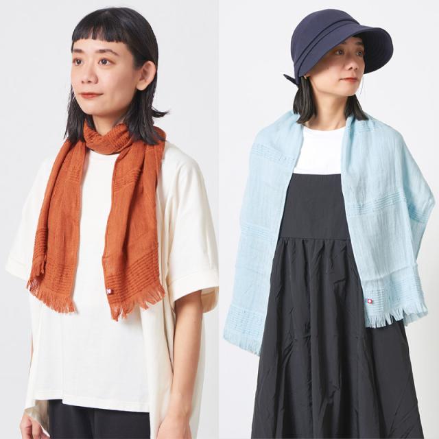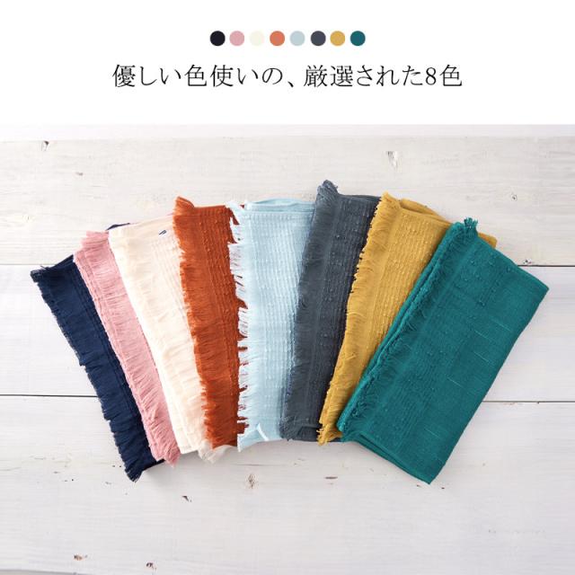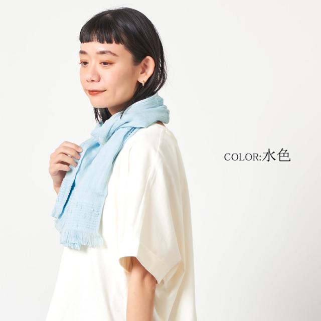 日焼け対策・冷房の冷え予防としても使いやすい、コットンをふんわり織り上げた優しい肌触りのたおるマフラー。