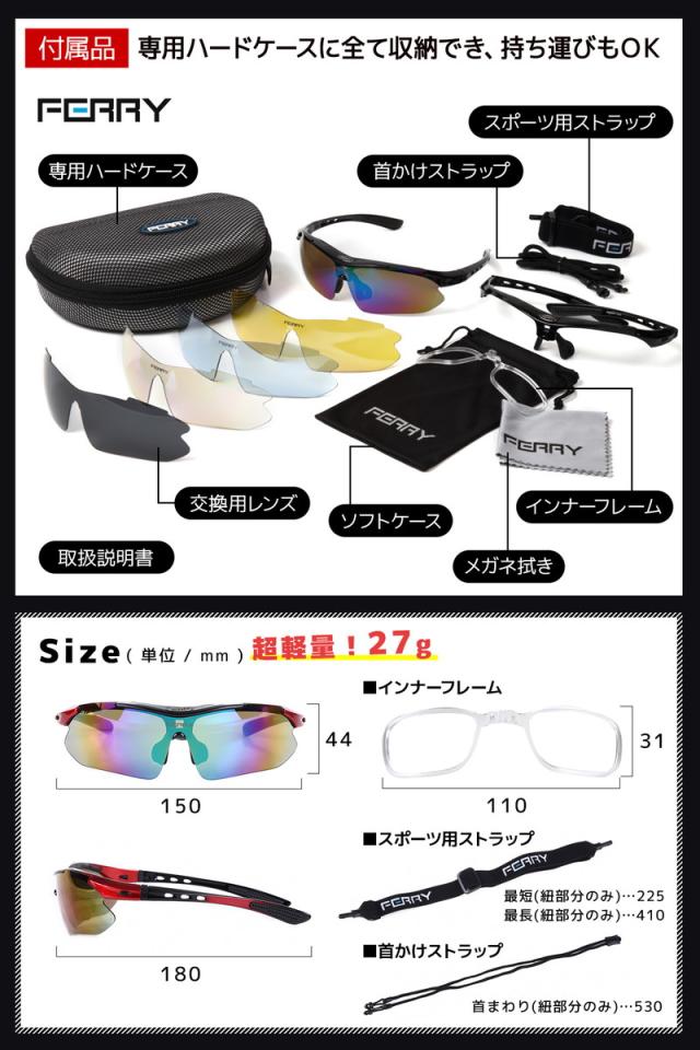 FERRY 偏光レンズ スポーツサングラス ゴーグル仕様 フルセット