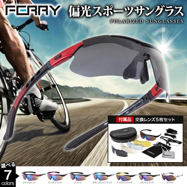 FERRY 偏光レンズ スポーツサングラス フルセット 専用交換レンズ5枚 ユニセックス 7カラー スポーツ用 アイウェア 偏光グラス
