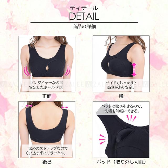 寝ながら美乳 ナイトブラ おやすみブラ ノンワイヤー 夜用 レディース 4カラー バストケア 育乳 ブラトップ ルームウェア