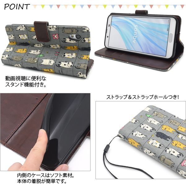 スマホケース AQUOS sense2 SH-01L SHV43 SH-M08 Android One S5 手帳型 干されてる猫 ねこ模様 おしゃれ 可愛い にゃんこ柄 携帯ケース スマホカバー 装着簡単 ストラップホール付き 猫グッズ 携帯カバー お洒落 シンプル かわいい スマートフォンケース au携帯カバー