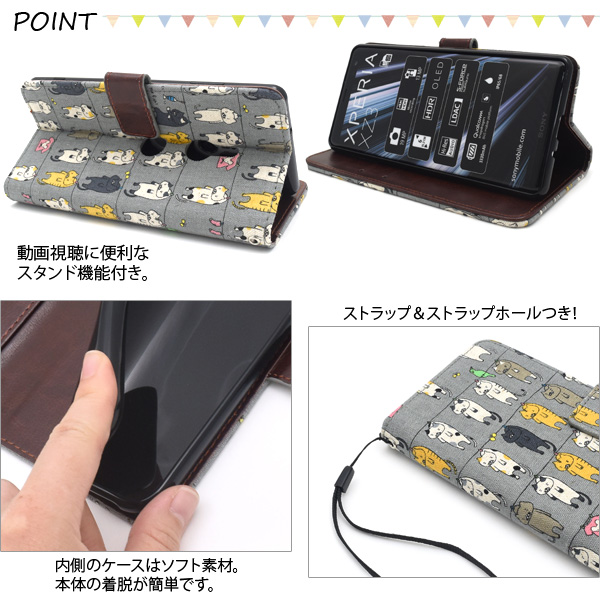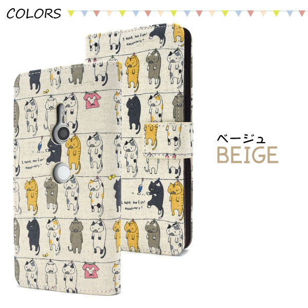 猫好きなら気に入ること間違いなし!!いっぱいの猫達が干されている柄の手帳型ケースです。ちょっとしょんぼりしている感じがして、見ていて飽きないかわいいケースです。 衝撃やキズなどからスマートフォンを守るのはもちろん、カメラ、イヤホンや各種ボタンなどをケースに入れたまま操作可能です。 内部はソフトケースなので着脱が簡単! 内側にはカードポケットとサイドポケットが付いています。また、ストラップとストラップホール付きです。カラーはベージュとグレーの2色からお選びいただけます。※デザイン、色味は画像と異なる場合がございます。※スマートフォンは付属しません。※ライセンス商品ではありません。