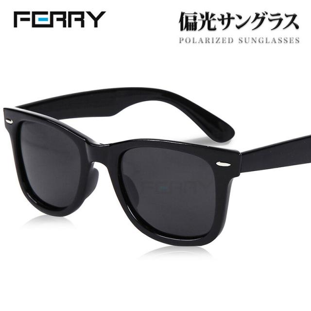 FERRY 偏光レンズ ウェリントン サングラス ポーチ&クロス ブラック ユニセックス メンズ レディース 眼鏡 釣り ドライブ UVカット