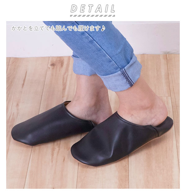 | 商品説明 | かかとを立てて使っても、踏んでも履けるスリッパです。シンプルなデザインのバブーシュスリッパで素材はPUレザーを使っています。ソールにクッション性があり疲れにくい。カラーも豊富です。 |
