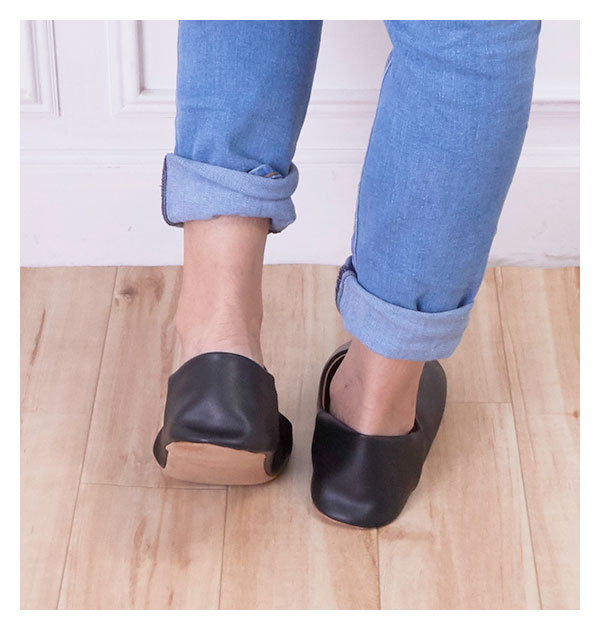 かかとを立てて使っても、踏んでも履けるスリッパです。