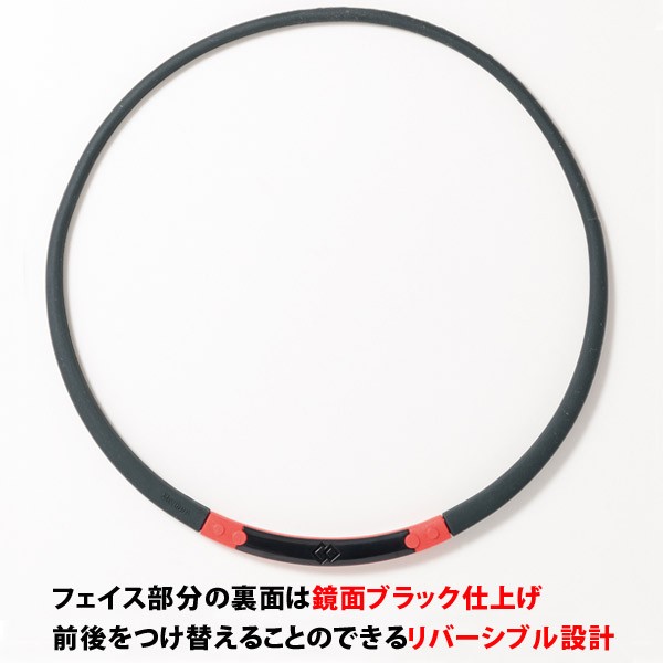 ジョイントを兼ねたフェイス部分は表面がメタリック仕上げ、裏面が鏡面ブラックのリバーシブル設計。2種類のデザインが楽しめて、ウェアやファッションに応じてイメージを変えられます。