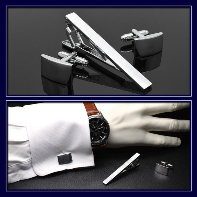 カフス タイピン セット シンプル ヘアライン シルバー | カフスボタン カフリンクス カフスリンクス カフス ヘアライン メンズ スーツ 結婚式 誕生日 シャツ
