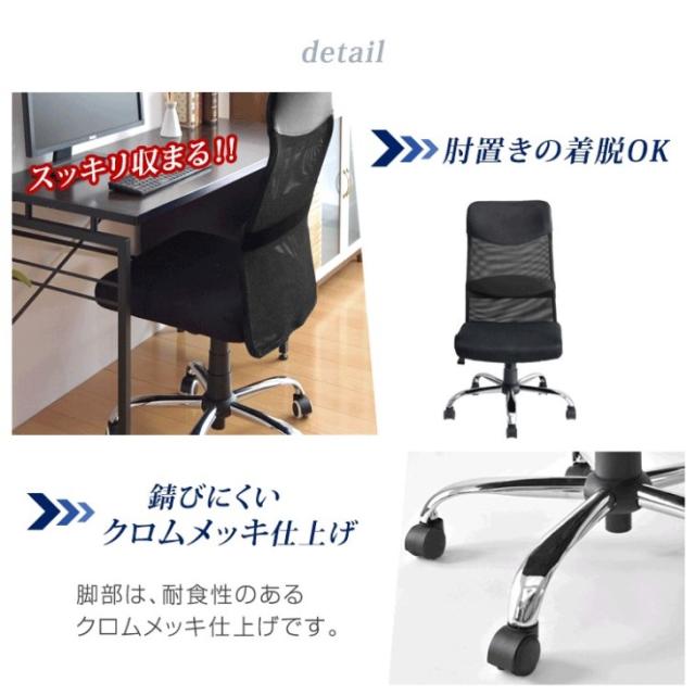【正午〜P5%還元】 【固定式】 腰楽ランバーサポート 床傷防止PUキャスター 肘付き メッシュ ハイバック コンパクト デスクチェア オフィスチェアー パソコンチェア ワークチェア 椅子 チェア