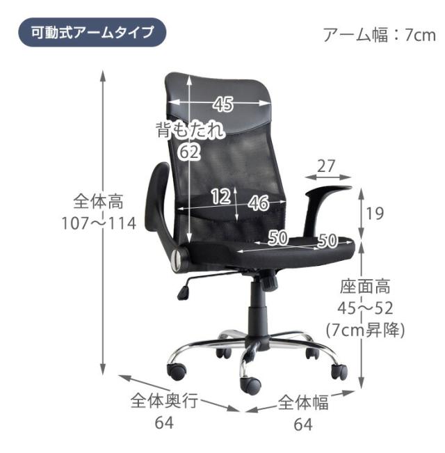 肘掛の高さ:64〜71cm