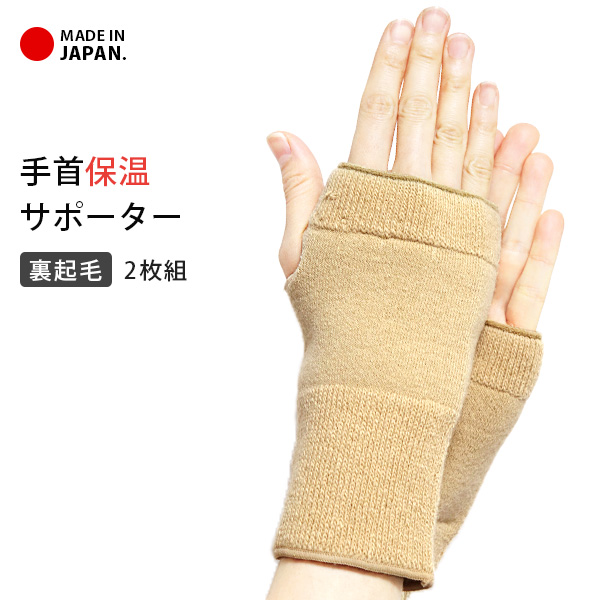 冬新作 手首サポーター 保温 日本製 裏起毛 2枚組 遠赤保温 手首 指穴 サポーター 関節 暖かい 防寒 冷え対策 リブ ナチュラル *2 *y3-3t
