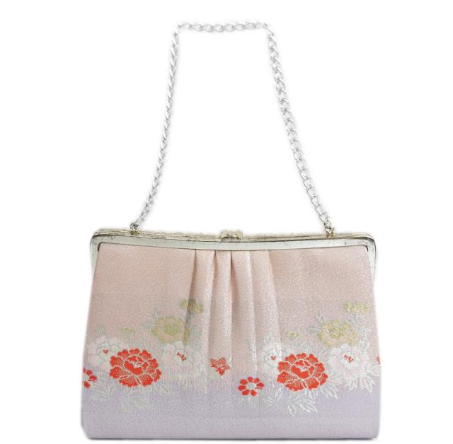 【訳有り 少難あり】 バッグ 佐賀錦 薄紫薄ピンク地牡丹小花 振袖 成人式 卒業式 袴 訪問着 着物 女性用 レディース 単品 はかま 和装