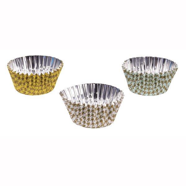 千鳥格子のおしゃれなデザインのアルミ製カップケーキ焼き型です。
