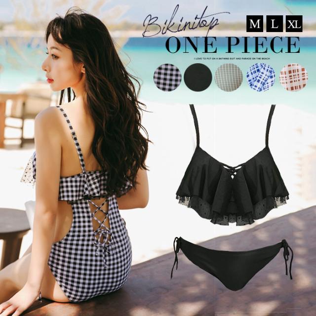 水着 レディース 体型カバー ビキニ バンドゥビキニ フリル フレアトップ 小胸水着 オトナ女子 無地 女性 ホルターネック 上下別 大きいサイズ 韓国 オールインワン フィットネス水着 ぽっちゃり カバーアップ おしゃれ セパレート 体系カバー 20代 30代 40代 50代 60代