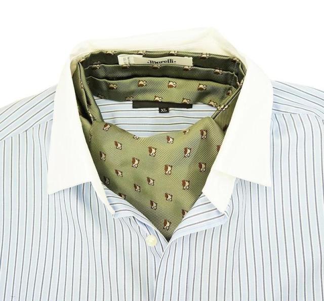 メンズ シルク アスコット ふくろう スカーフ (イタリア マレリー社 ネクタイ) ・グリーン 日本製 ラッピング無料