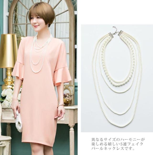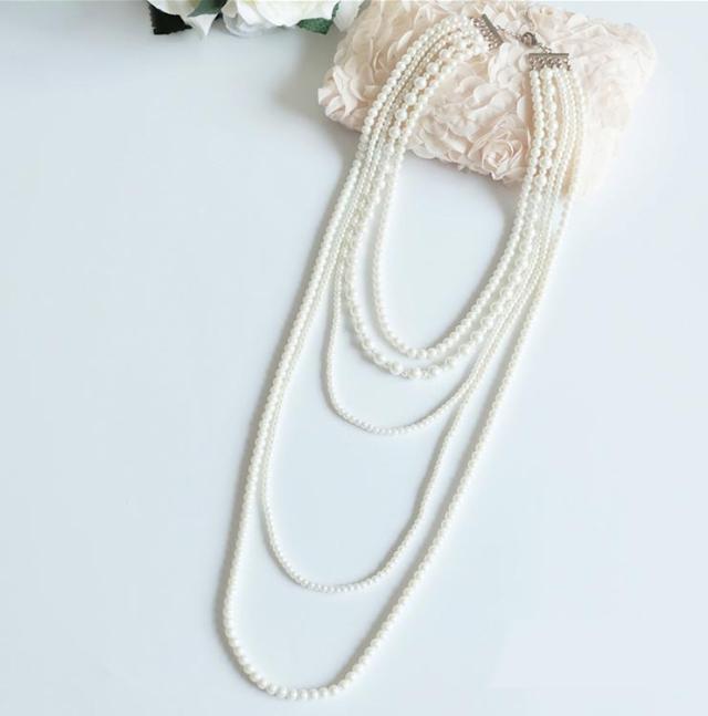 5連のパールがゴージャスなロングフェイクパールネックレス♪