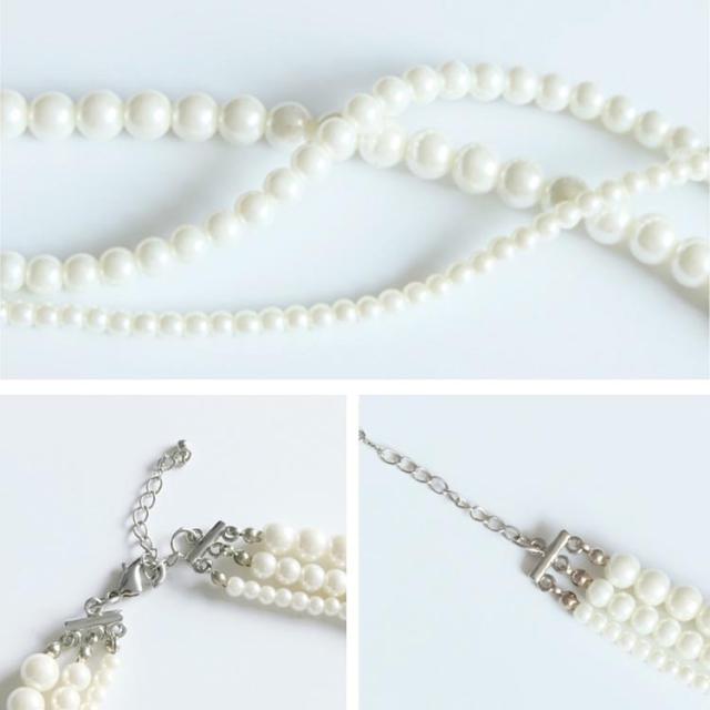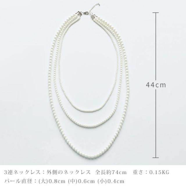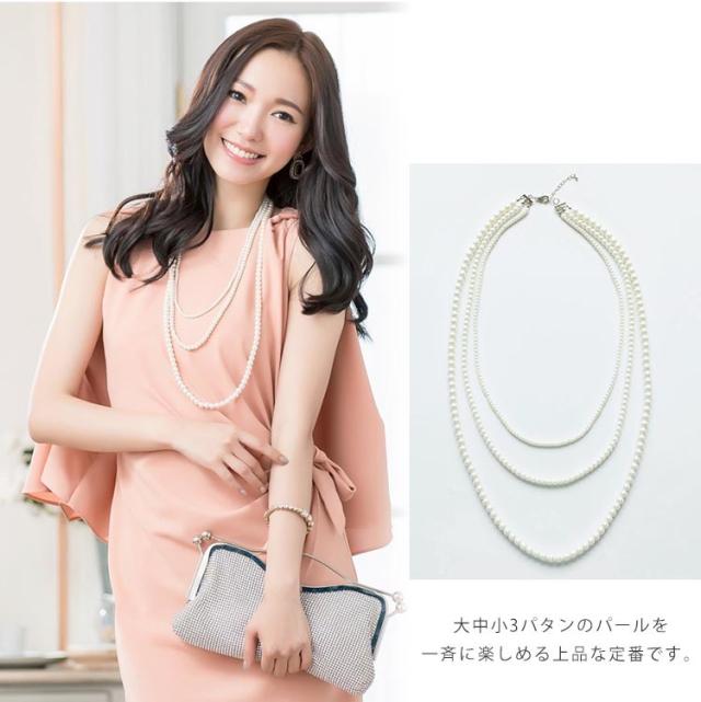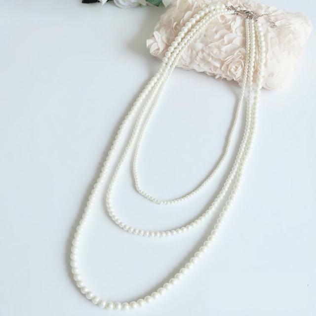 3連のパールで顔周り華やかに、ロングフェイクパールネックレス♪