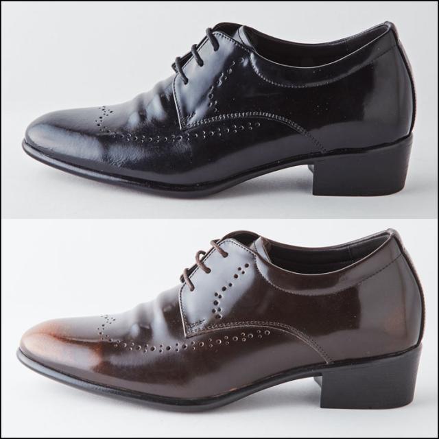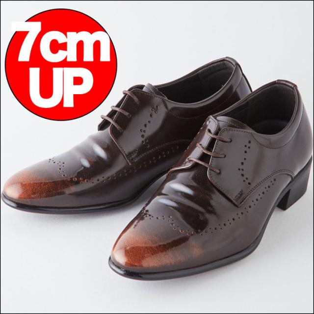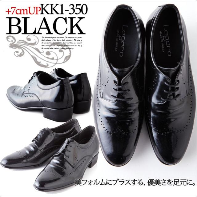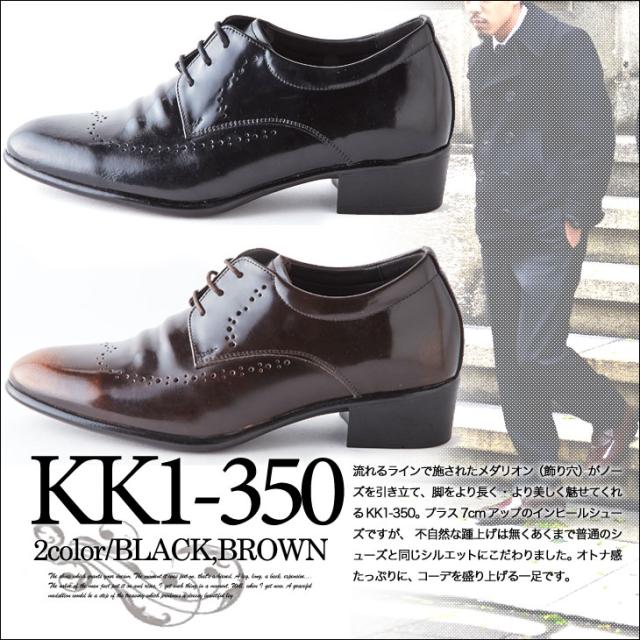 【本革】【全2色】シークレットシューズ 7cmアップ 外羽根プレーントゥ メダリオン kk1-350