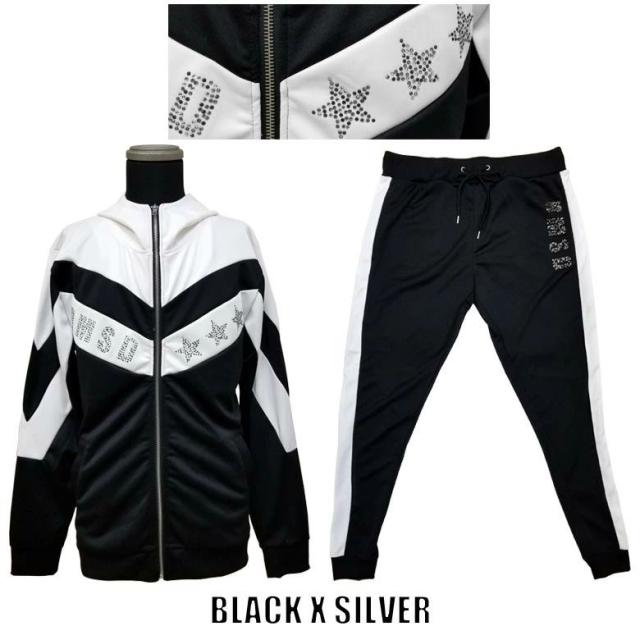 【閉店セール】パネルデザイン ラインストーンジャージセットアップ 上下セット メンズ パーカー ZIPパーカー ジョガーパンツ パンツ ジャージ 3613-51 セットアップ メンズ パーカー ZIPパーカー ジョガーパンツ パンツ ジャージ ジョガー ラインパンツ Bernings-Sho