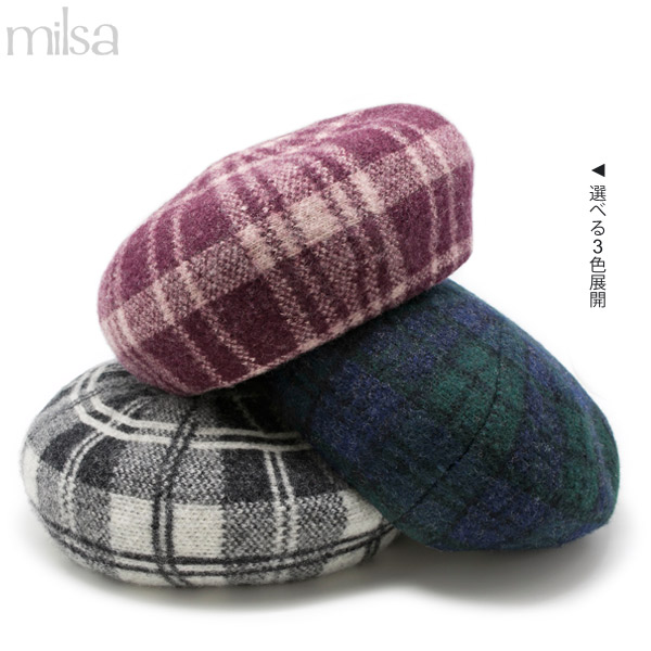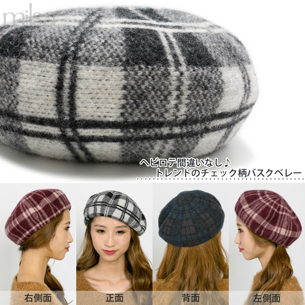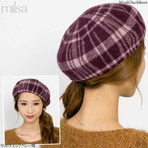 ベレー帽 秋冬 [メール便可] 帽子 レディース ウール / Woolチェックベレー帽
