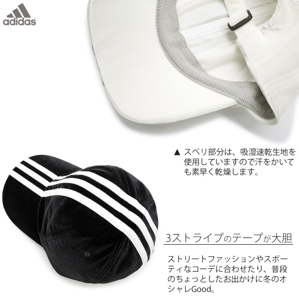 キャップ adidas [メール便可] 帽子 メンズ レディース ベロア 秋冬 吸湿速乾 / adidas(アディダス)ベロア3ストライプCAP