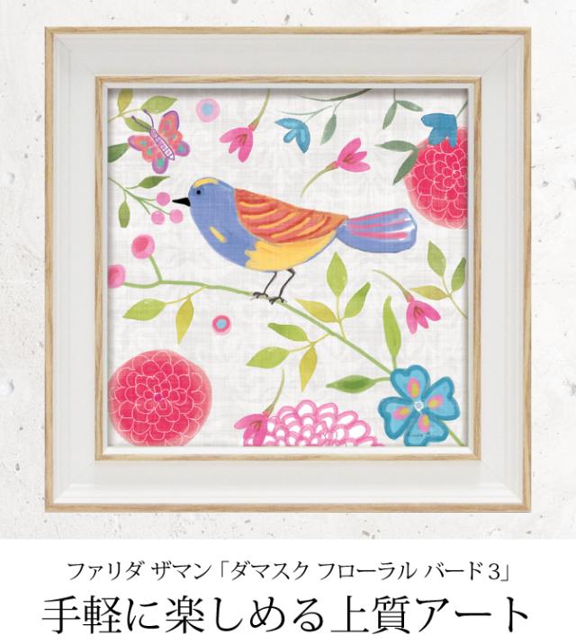 アートパネル 鳥 花 モダン 玄関 北欧 ウォール アート ミニ 壁掛け 額入り インテリア アートフレーム 鳥 ミニゲル アートフレーム ファリダ ザマン ダマスク フローラル バード3 FZ-02011