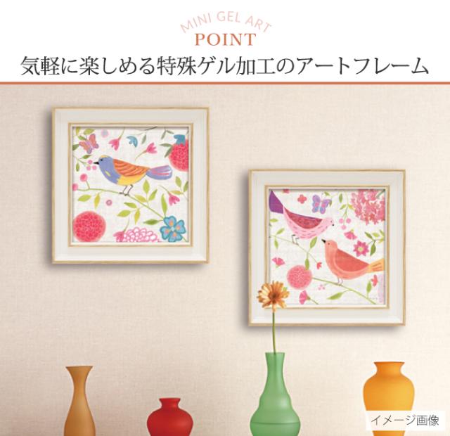 手軽に楽しめる特殊ゲル加工のアートフレーム。可愛らしい小鳥のアートでお部屋を素敵に演出。