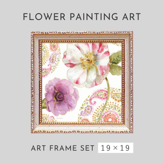 アートパネル 花 19×19cm 小さい アート パネル 壁掛け 額入り フレーム付き インテリア 花の絵 おしゃれ モダン 玄関 リサ オーディット レインボー シード ペイズリー1 LA-02003