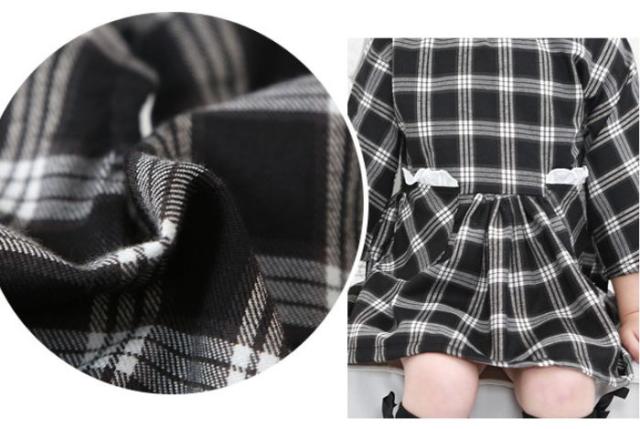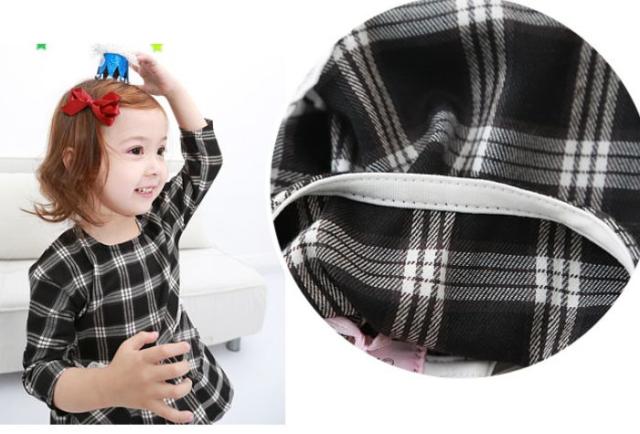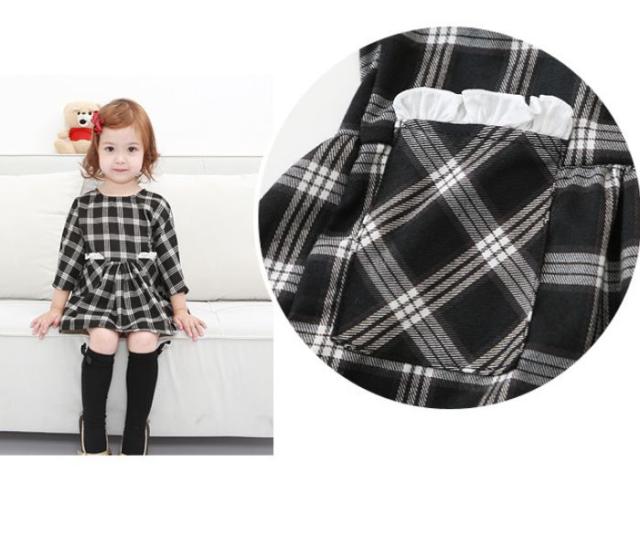 春にオススメ子供服 チェック柄8分袖ワンピース