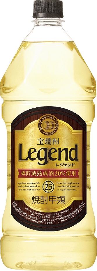 宝焼酎 レジェンド は、サトウキビ糖蜜、トウモロコシ、大麦などを原料に10年以上樽で寝かせた熟成酒などを超低温熟成・ろ過することで生まれた、