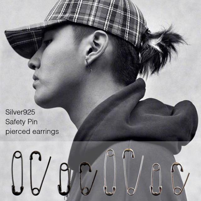 メール便 送料無料 シルバー925 安全ピン型 ピアス 2個セット アクセサリー メンズ レディース シルバー ブラック パンク ロック