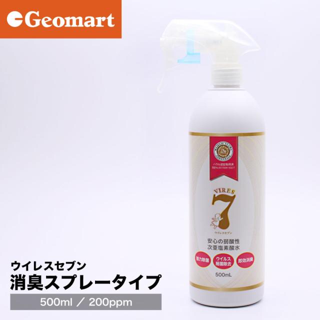 ウイレスセブン スプレータイプ 弱酸性 次亜塩素酸水溶液 500ml(200ppm) ボトル キッチン除菌 コロナ 汗や加齢臭 ペットの消臭 菌やウイルスの感染予防 お風呂のカビ予防 タバコの臭い ハラール(HALAL)認証取得