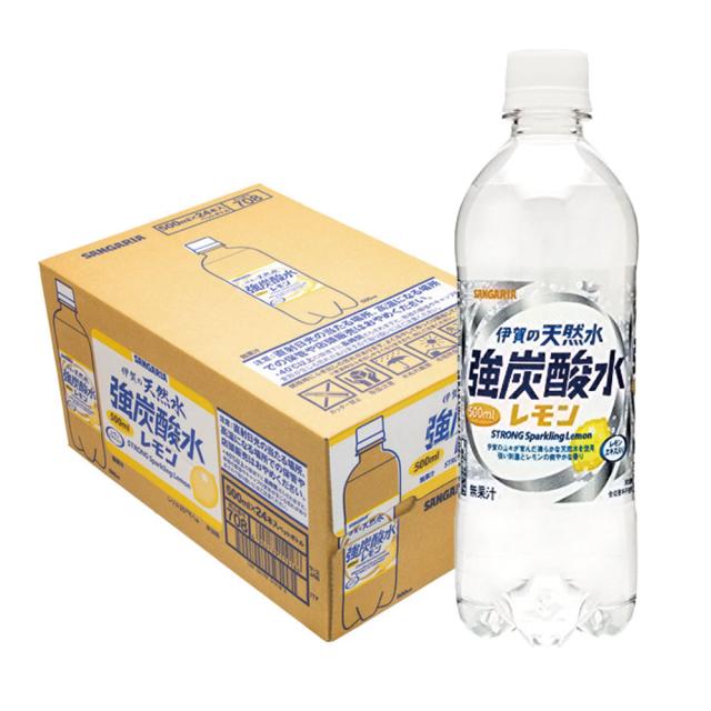 炭酸水 送料無料 サンガリア 伊賀の天然水 強炭酸水 レモン 500ml×24本