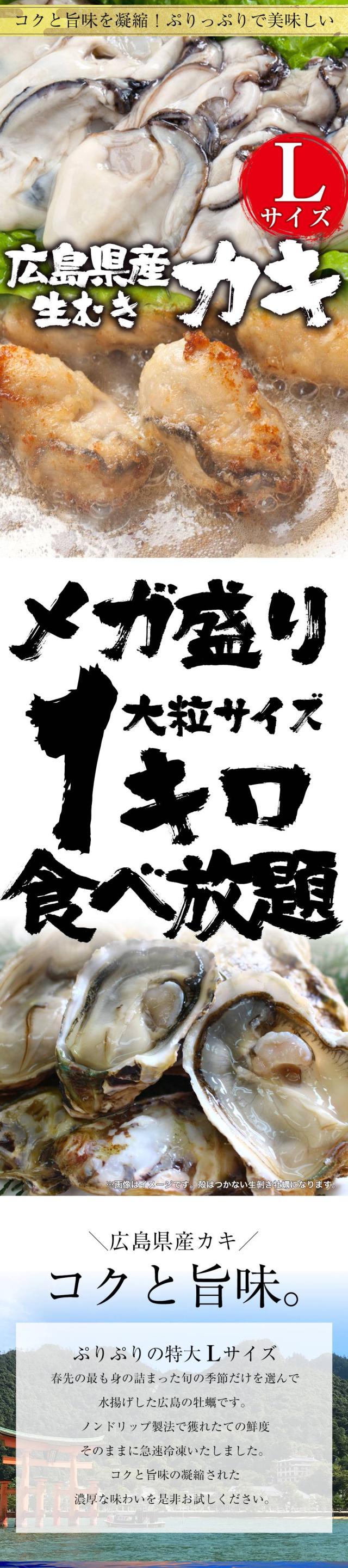 魚奏 広島産 剥き牡蠣 大粒 Lサイズ 1kg 解凍後約850g/40個前後 送料無料 カキ かき 在宅