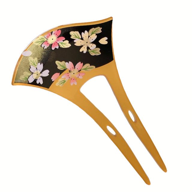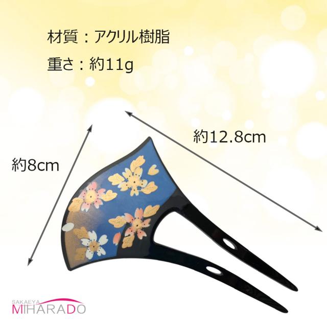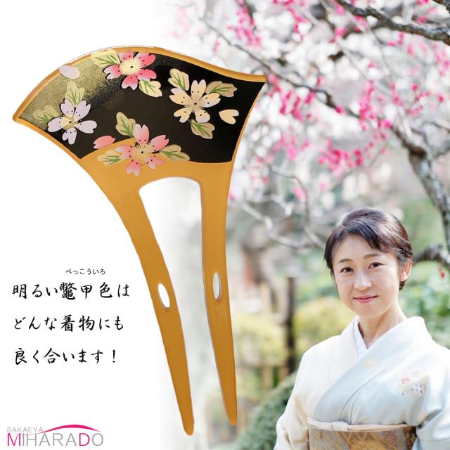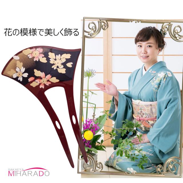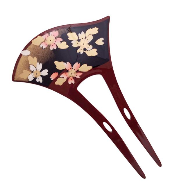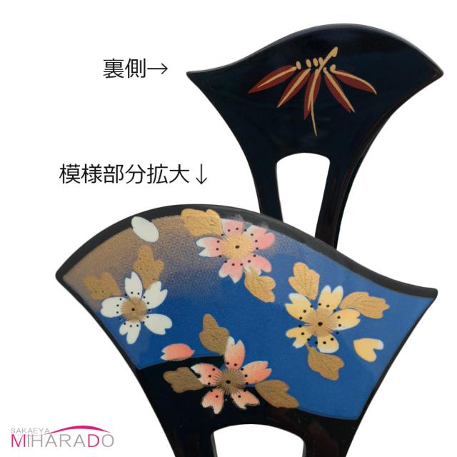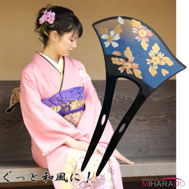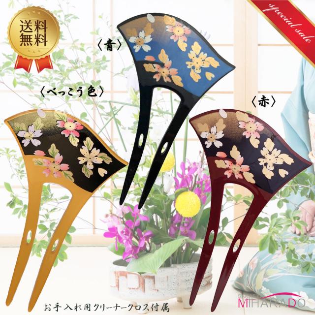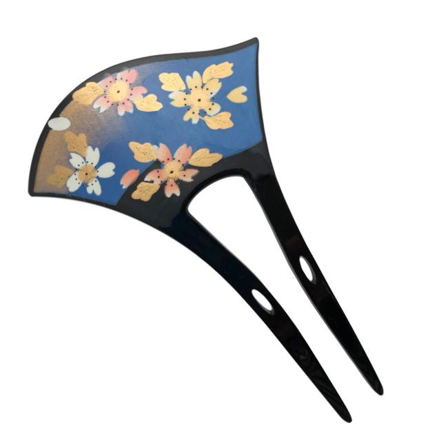 送料無料 かんざし バチ型 扇型 桜吹雪 桜 古典柄 シンプルデザイン 青 赤 べっこう色