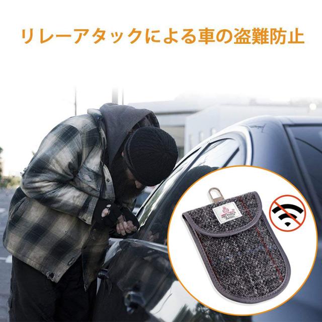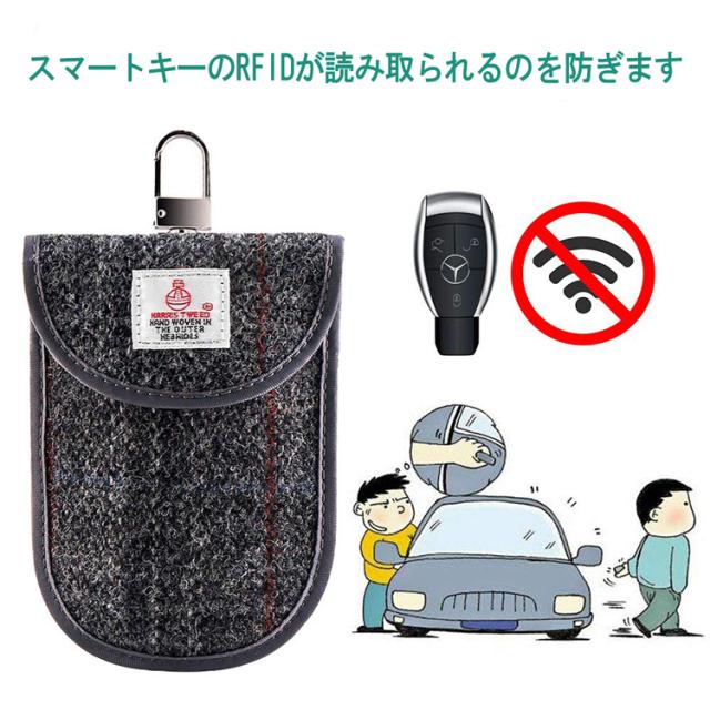 リレーアタック対策 リレーアタック キーケース 電波遮断ポーチ スマートキー 盗難防止 電波遮断 ポーチ 車 高級 ハリスツイード