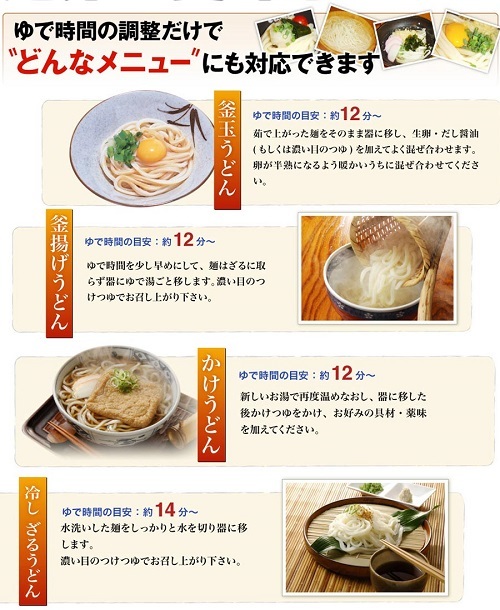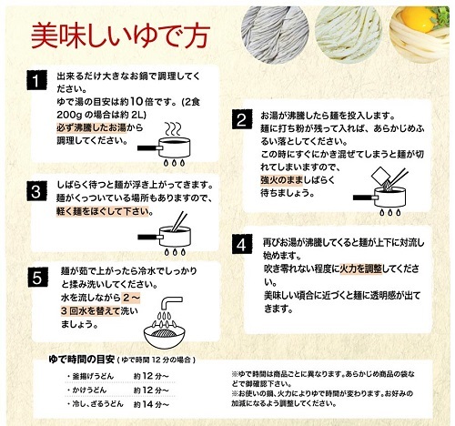 ※ゆで時間は商品ごとに異なります。あらかじめ商品の袋などで御確認下さい。