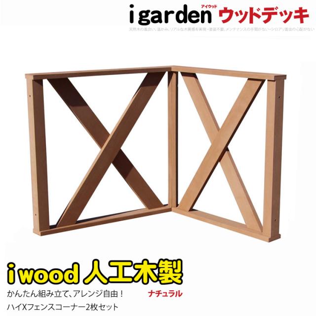 ウッドデッキフェンス 人工木製 クロス ハイタイプ コーナー2枚セット ナチュラル 高さ80cm アイウッド 人工木 樹脂製 色あせない 腐らない シロアリ防止 メンテナンス楽 ザラザラ加工仕上げ リアルな木質感