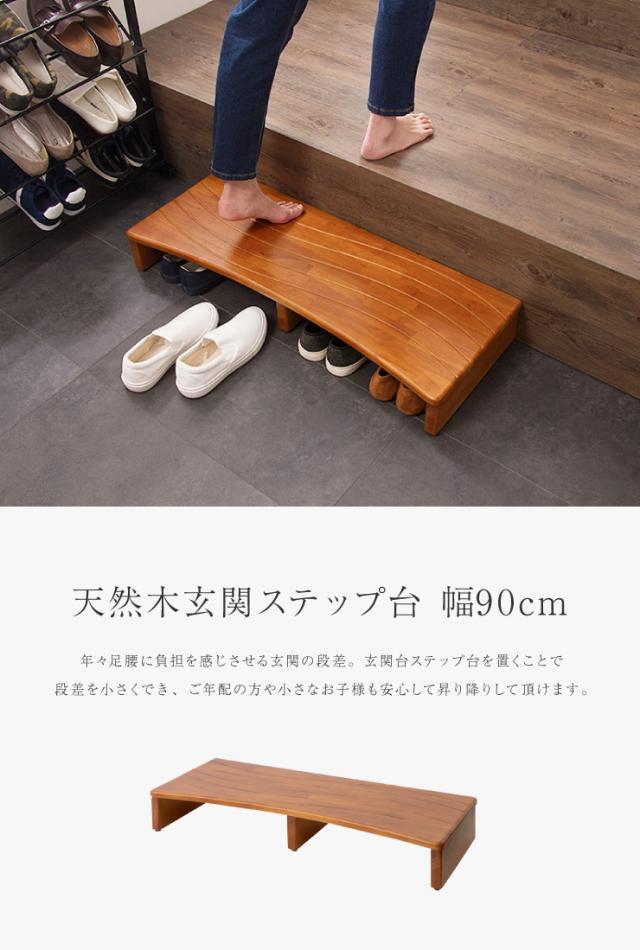 玄関台 幅90cm ウェーブ型 玄関 台 踏み台 ステップ 木製 玄関ステップ 段差 軽減 靴 昇降台 補助具 足場 完成品(代引不可)【送料無料】