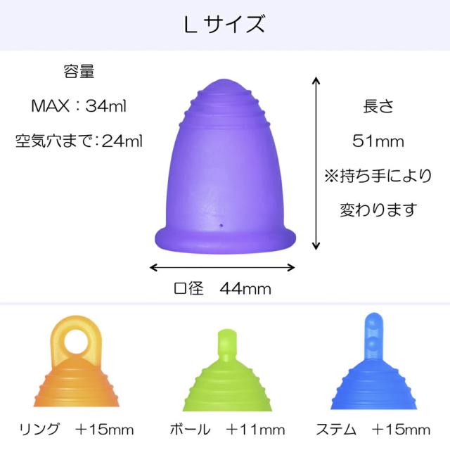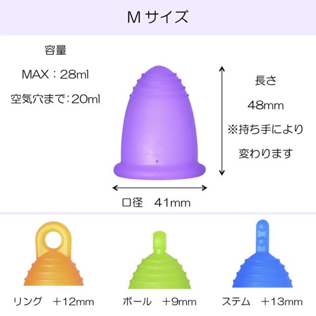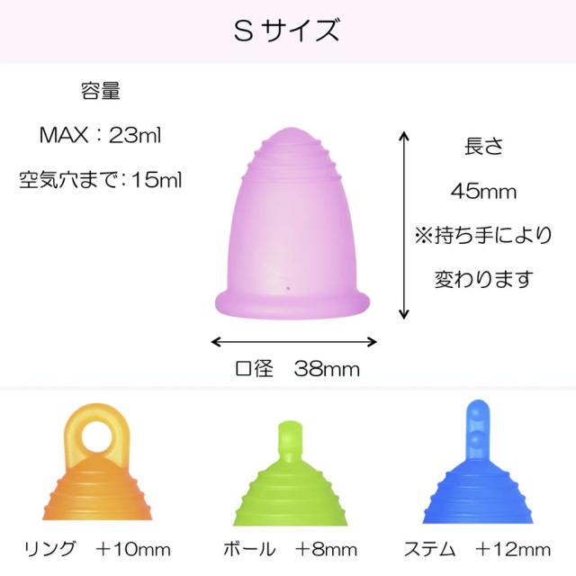 【Sサイズ】 ・性行為の経験がない方 ・出産経験がなく、骨盤底筋の強い方 ・小柄で経血の少ない方 |