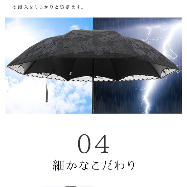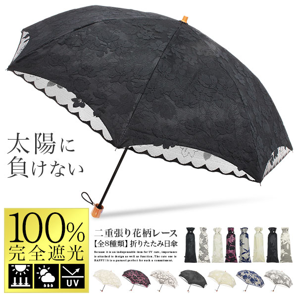 日傘 完全遮光 折りたたみ 遮光率100% レディース 雨傘兼用 晴雨兼用 長傘 UVカット99.9% UPF50+ レース 二重張り かわず張り 耐風 ワンタッチ ジャンプ 深張り レディース 傘 晴れ雨兼用 雨晴れ兼用 送料無料 折り畳み おりたたみ
