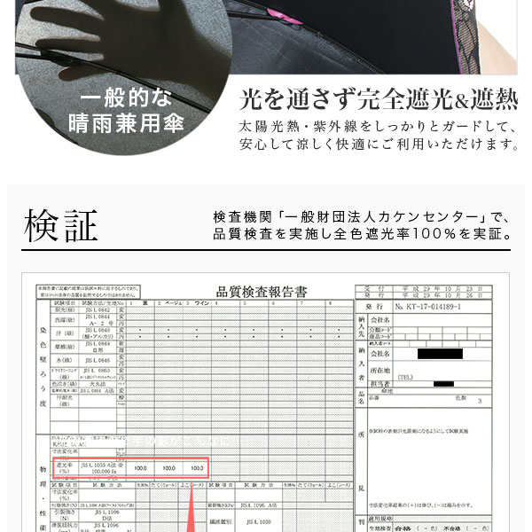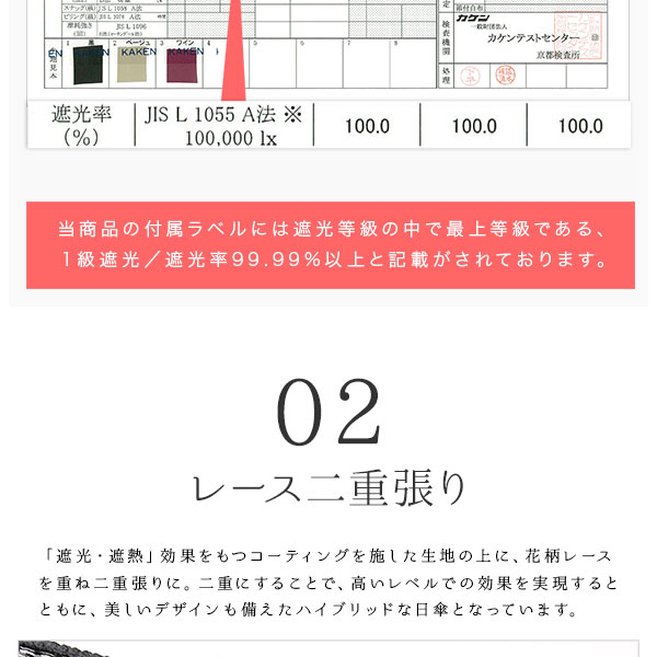 ・その他:【完全遮光・1級遮光】遮光率100%/晴雨兼用/安全ロクロ/UVカット率99%以上
