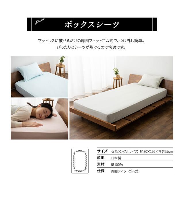 ボックスシーツ 布団・ベッド兼用 セミシングル 日本製 綿100% 布団カバー マットレスカバー ベッドシーツ 敷きカバー シーツ 無地 おしゃれ 丸洗い 洗える 吸湿発散 カバー 敷き布団 国産 綿 コットン ふとん 白 オールシーズン 来客用 替え プレッソ 北欧 エムール