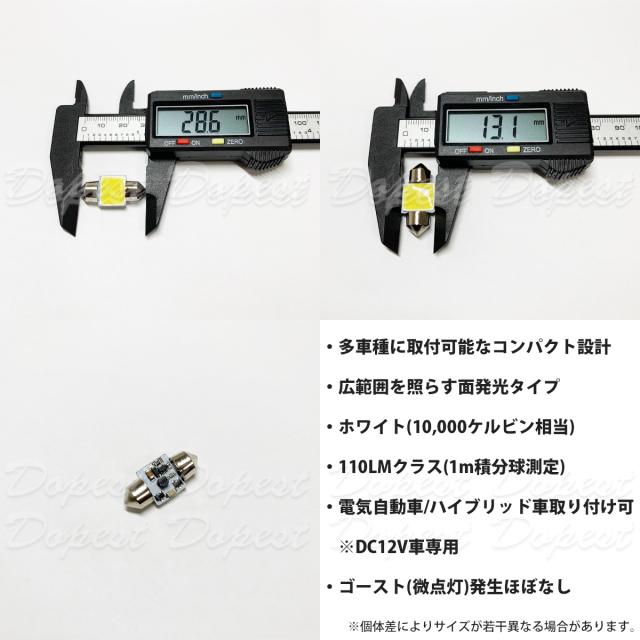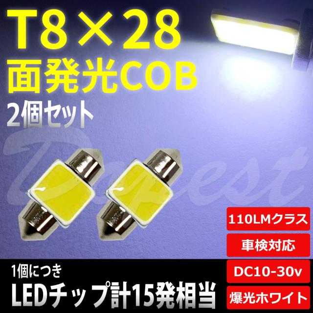 T8×28mm LED 面発光 COB ルームランプ ホワイト/白 2個セット 汎用 ライト 球 ラゲッジ トランク 荷室 枕型 フェストン球 T10×28