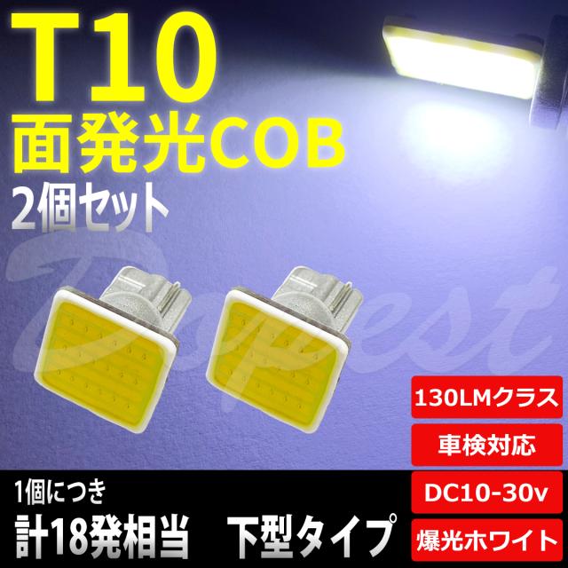 T10 バルブ LED COB 面発光 ルームランプ ホワイト 白 下型 2個 セット 汎用 ライト 球 ドアカーテシ トランク