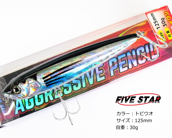 青物用トップウォータールアー ファイブスター アグレッシブペンシル 125mm 30g トビウオ / つり具