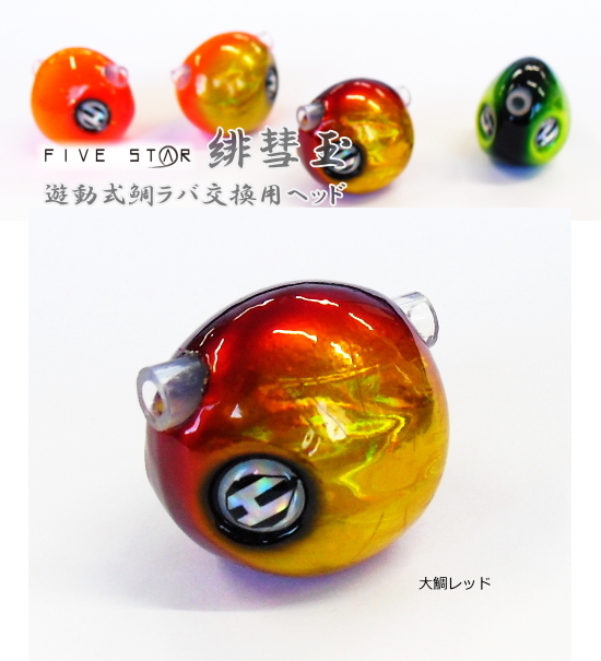 遊動式鯛ラバ交換用ヘッド ファイブスター 緋彗玉 ヒスイダマ 80g 大鯛レッド /10 メール便可