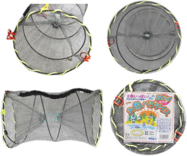 | 商品情報 | マルシン漁具 Marushin 小魚・エビ取り仕掛け網 Big お魚パラダイス 誰でも簡単に小魚などをいっぱい獲れる「お魚パラダイス」にちょっと大きめの「お魚パラダイスBig」が登場です。 広げてエサ袋にエサを入れてあとは投げ込むだけの手軽さとBigといいつつ、携帯に便利な絶妙なサイズがより大きな楽しさを与えてくれます。 ■サイズ:直径20cm×横幅32cm |