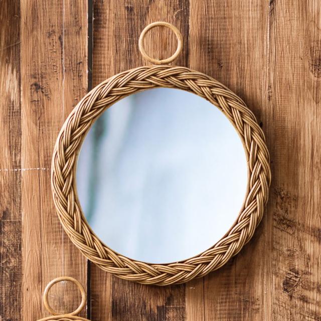 ミラー 鏡 壁掛け ウォールミラー 丸型 ラタン アンティーク調 壁掛けミラー 直径約34cm アジアン バリ おしゃれ 洗面