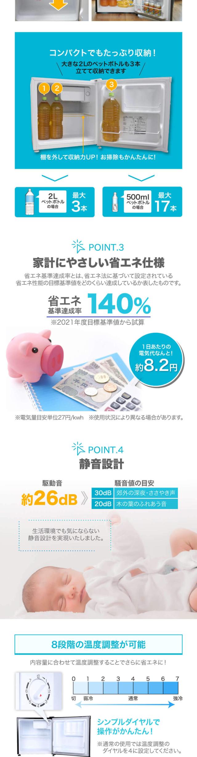 - 飲み物を立てるスペースが考えてた物と多少食い違っていましたが、内部スペース的にはかなり広く感じるので、今回はサブの冷蔵庫として購入したので十分満足です