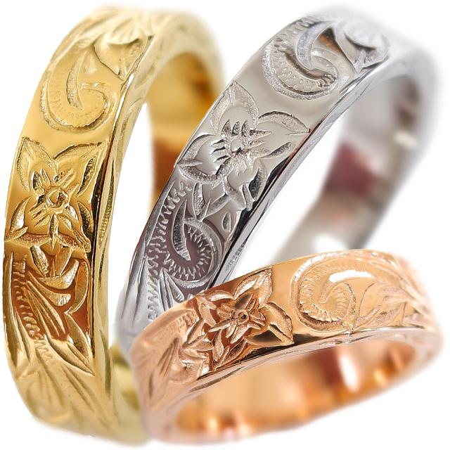 限定個数 ハワイアンジュエリー リング ゴールド ピンクゴールド イエローゴールド レディース フープ ホヌ スクロール ラッピング対応 アレルギー対応 ペアリング セットにも